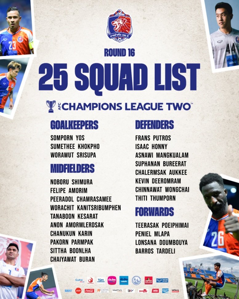 ล่าสุดเมื่อวันจันทร์ การท่าเรือ เอฟซี เผยรายชื่อ 25 นักเตะ การท่าเรือ เอฟซี ชุดลุย ACL2 2024/25 รอบน็อกเอาท์ ซึ่งมีดังนี้
